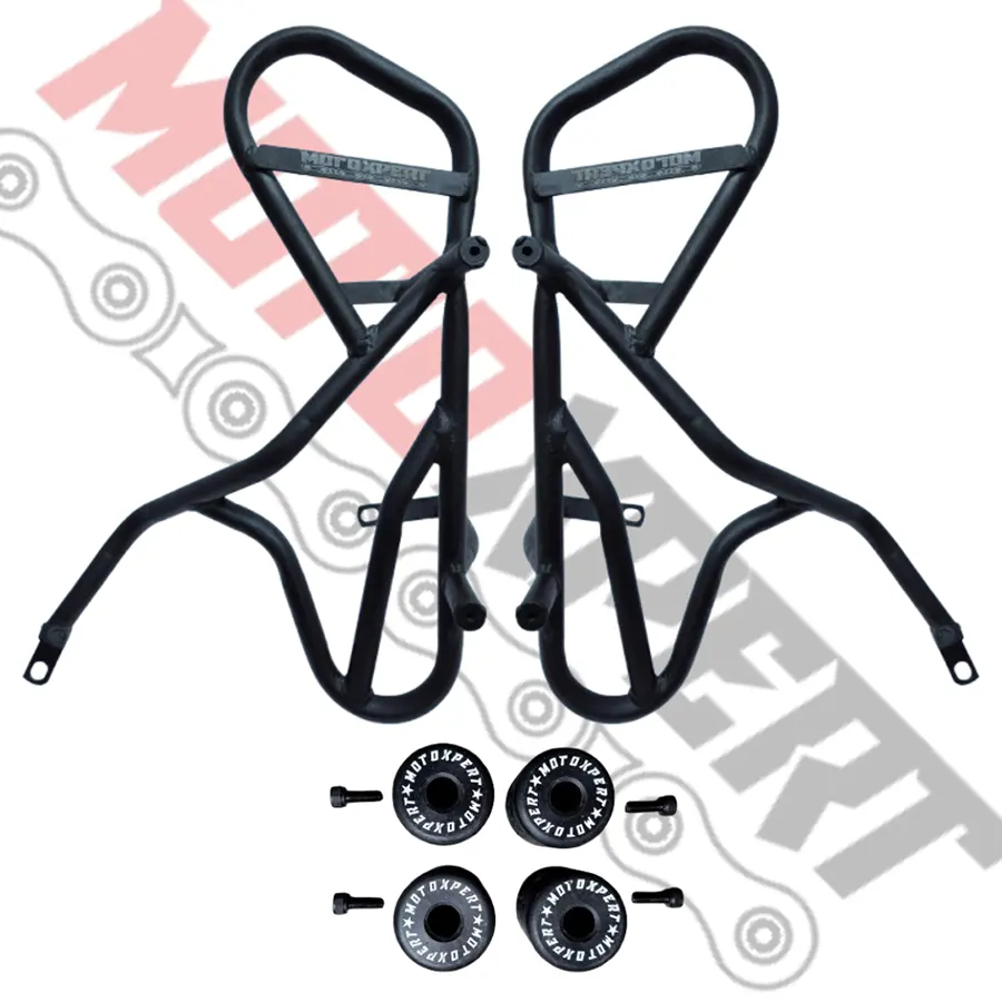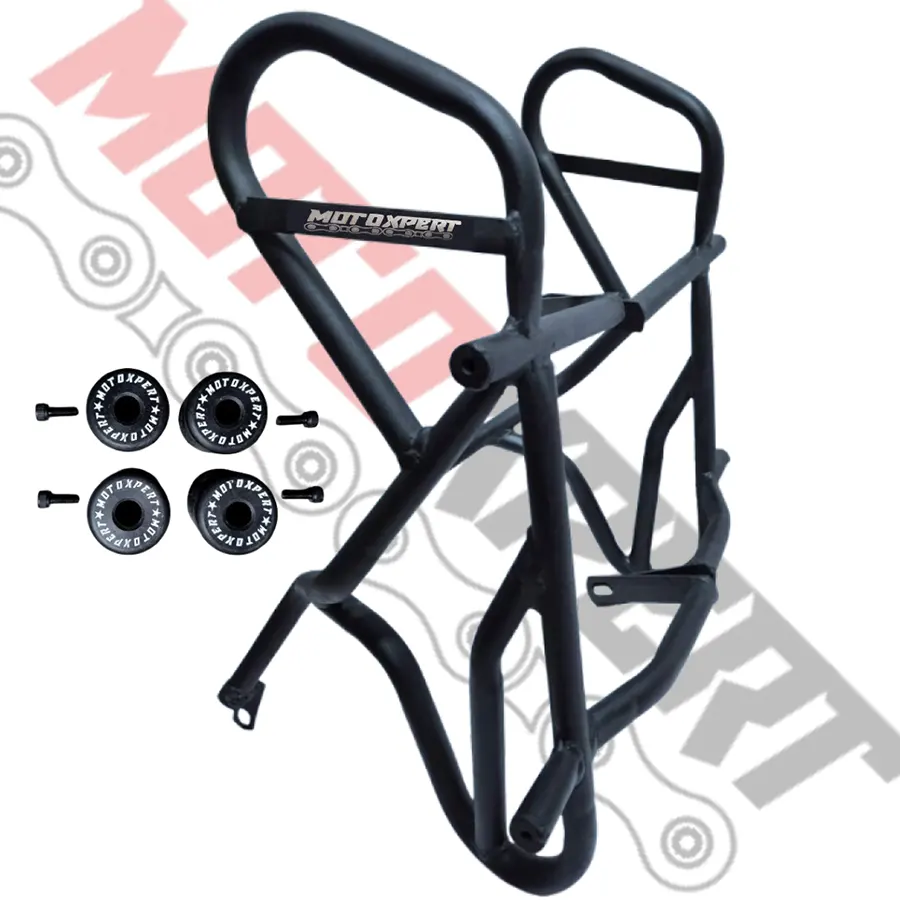 The Motoxpert crash guard for Hero Xpulse 200 is built with durable 16-gauge steel pipe, offering reliable protection without compromising style. Designed for strength and stability, it safeguards the engine and body during unexpected falls or impacts. Its precision fit ensures easy installation, while the robust construction enhances rider confidence on every ride. Perfect for daily commutes or long tours, this crash guard combines safety, performance, and durability in one trusted accessory.