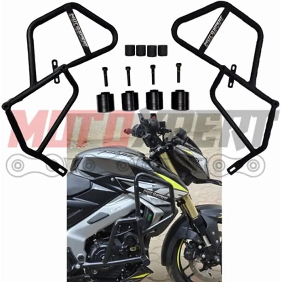 The Motoxpert crash guard for Bajaj NS400z is built with durable 16-gauge steel pipe, offering reliable protection without compromising style. Designed for strength and stability, it safeguards the engine and body during unexpected falls or impacts. Its precision fit ensures easy installation, while the robust construction enhances rider confidence on every ride. Perfect for daily commutes or long tours, this crash guard combines safety, performance, and durability in one trusted accessory.