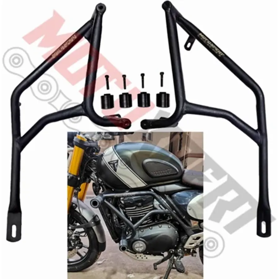 The Motoxpert crash guard for Triumph Scrambler 400X is built with durable 16-gauge steel pipe, offering reliable protection without compromising style. Designed for strength and stability, it safeguards the engine and body during unexpected falls or impacts. Its precision fit ensures easy installation, while the robust construction enhances rider confidence on every ride. Perfect for daily commutes or long tours, this crash guard combines safety, performance, and durability in one trusted accessory.