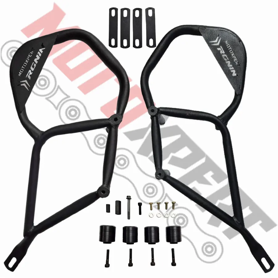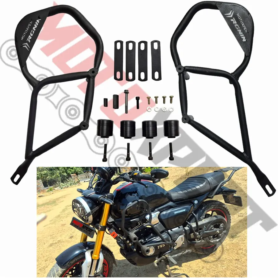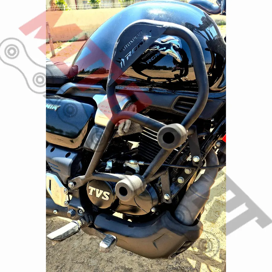 The Motoxpert crash guard for TVS Ronin is built with durable 16-gauge steel pipe, offering reliable protection without compromising style. Designed for strength and stability, it safeguards the engine and body during unexpected falls or impacts. Its precision fit ensures easy installation, while the robust construction enhances rider confidence on every ride. Perfect for daily commutes or long tours, this crash guard combines safety, performance, and durability in one trusted accessory.